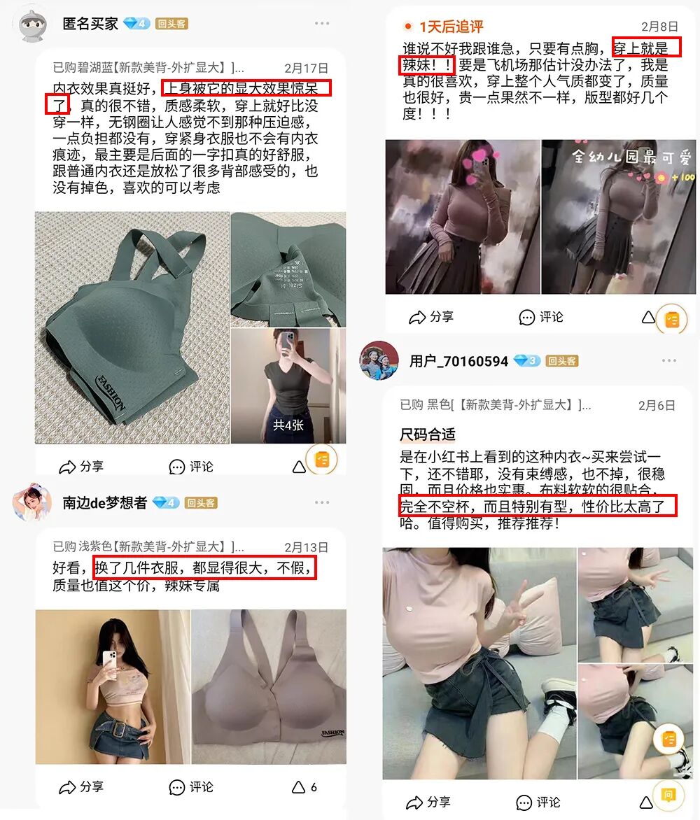 “上身被它的显大效果惊呆了”“胸型很饱满又显得自然”“很稳固不空杯,辣妹专属!”