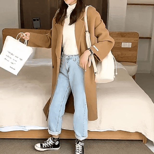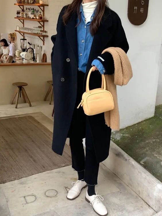 大衣+牛仔裤更是风格百变,基本可以实现清纯、文艺、潮流…各种风格。