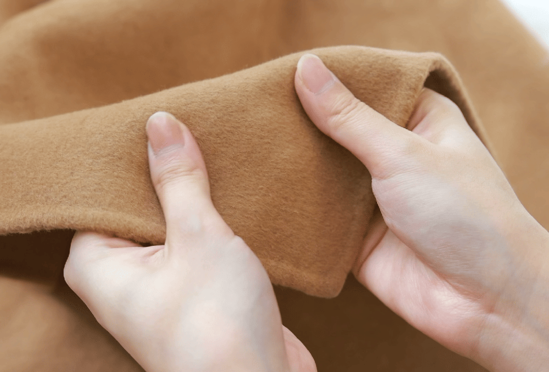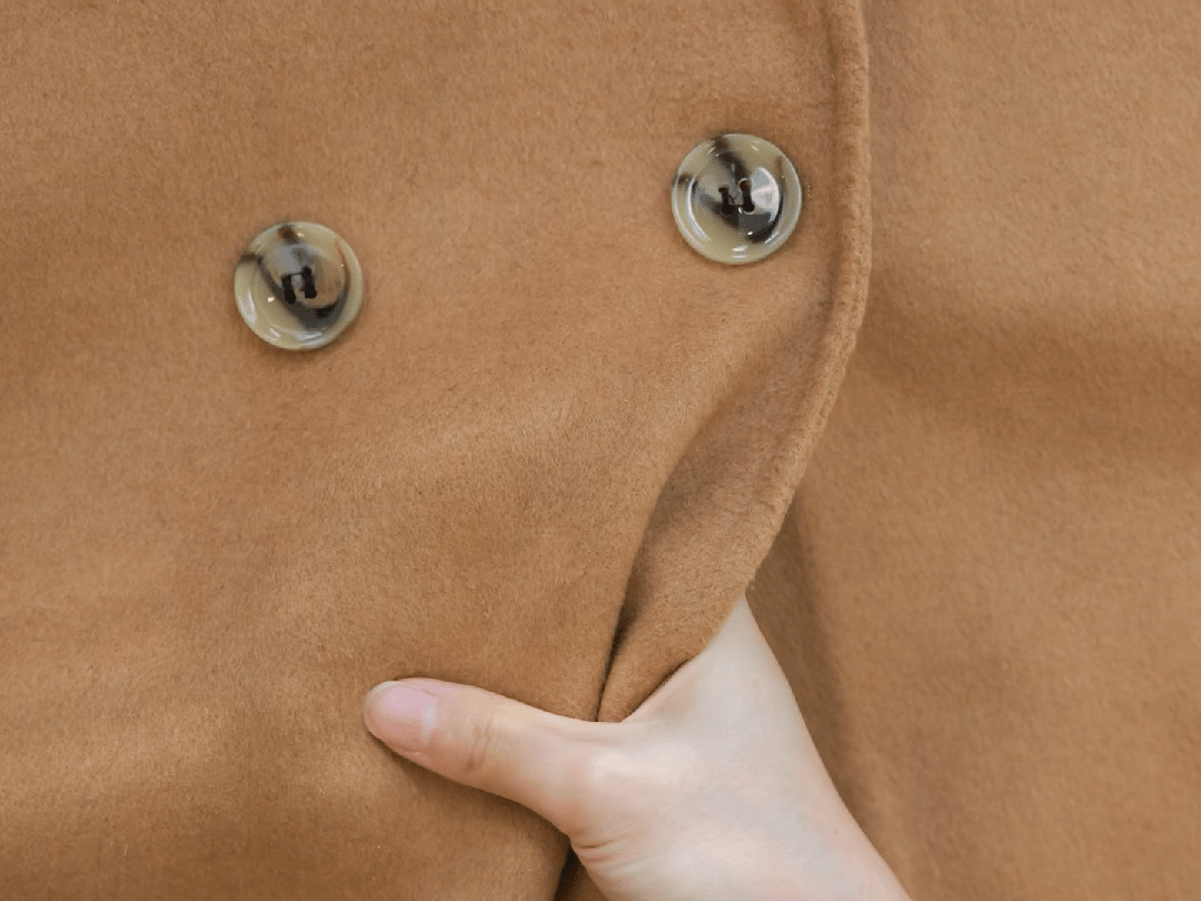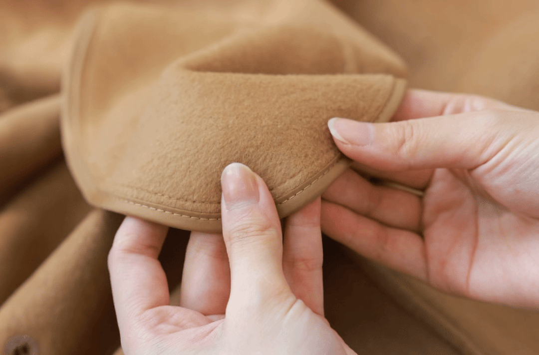 「双面呢面料+纯手工缝纫」设计: