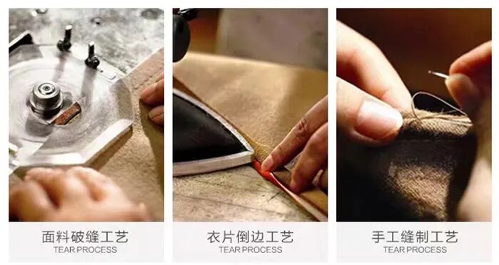 通过精细切割、缝纫等工艺,把薄薄的两层毛呢面料通过纱线缝合成一块。