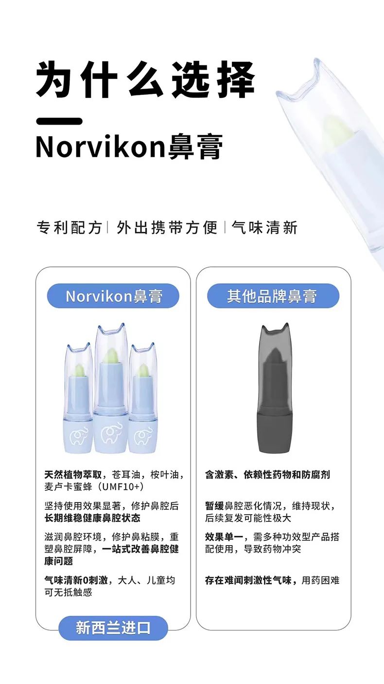 Norvikon研发团队为此开创了独有的护鼻配方,选用了新西兰独有的麦卢卡蜂蜜UMF10+。
