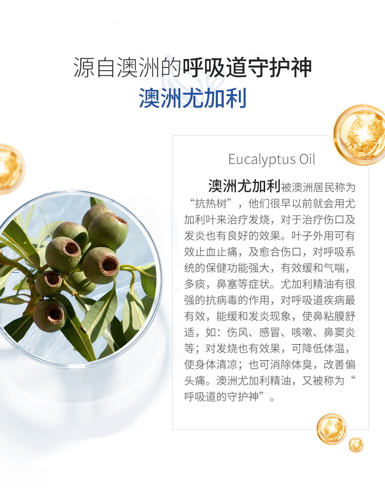进一步研究后发现,尤加利中含有的桉油醇,还具有化解粘痰、修复鼻粘膜的作用,对于改善炎症和呼吸疾病有很强大的效果!