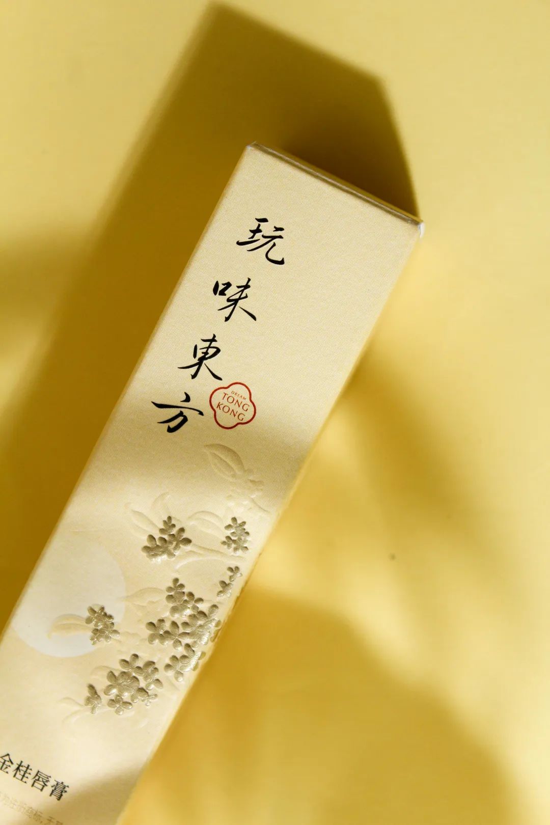 桂花色的硬纸盒上,盈盈一株桂花剪影,有一片片金色桂花瓣点缀,精致又不会太过张扬。