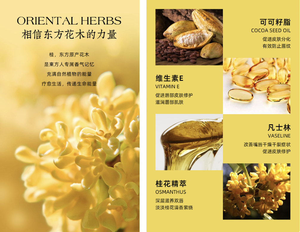 两千多年后的今天,我们拥有一支桂花香的唇膏,有幸与古人对话,表达自己的态度——在日常生活中,也能如桂花一般,淡泊、高雅。