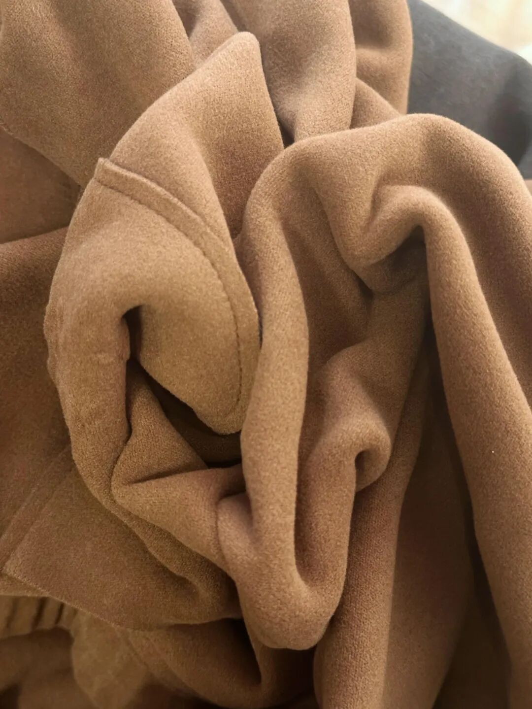 整条裤子里外都是那种软糯舒服的双面软毛呢,摸上去有细细的毛绒感。