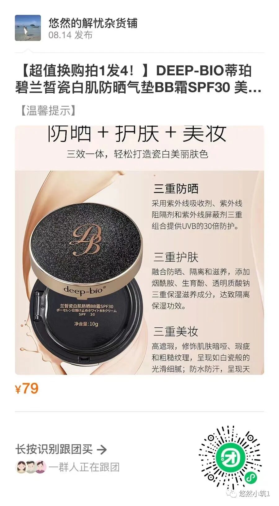 DEEP-BIO瓷白肌防晒气垫=保湿乳+防晒霜+隔离霜+粉底液+遮瑕膏,一盒抵5瓶!