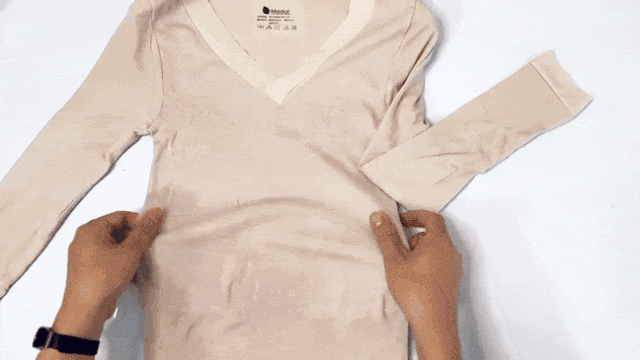 40支高支高密莫代尔面料,轻薄细腻,弹性非常好,上身自由舒展没有一点拘束感~