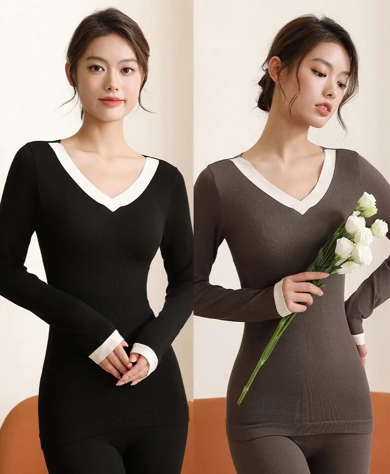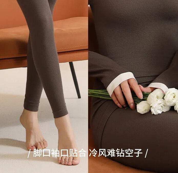 保暖内衣采用进口机器一体成型编制,没有骨侧缝,收紧腰腹,360度迎合身体曲线。