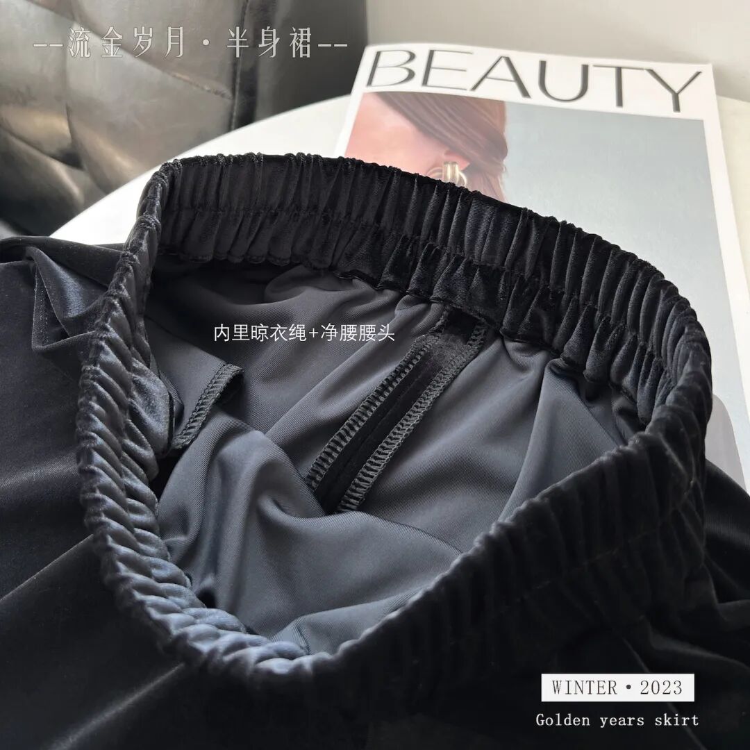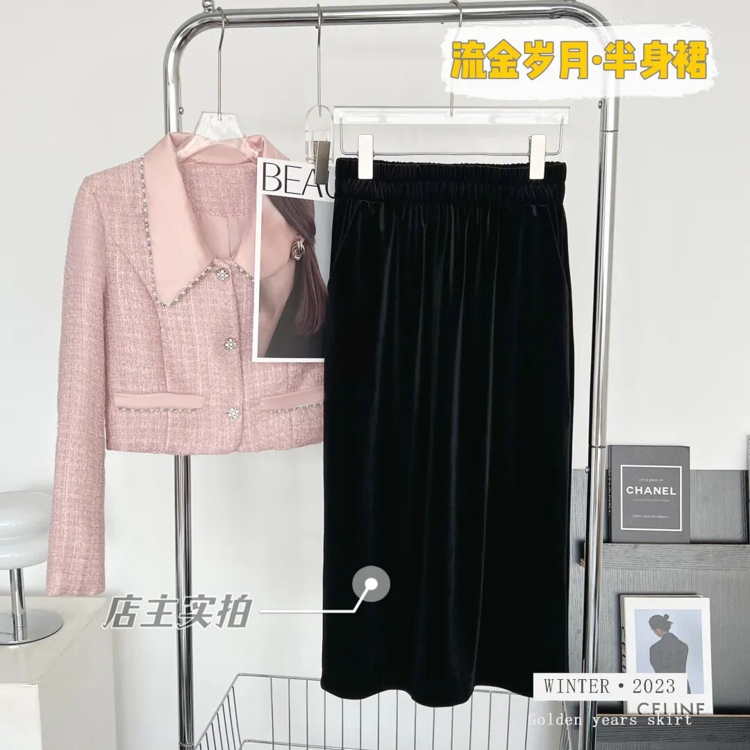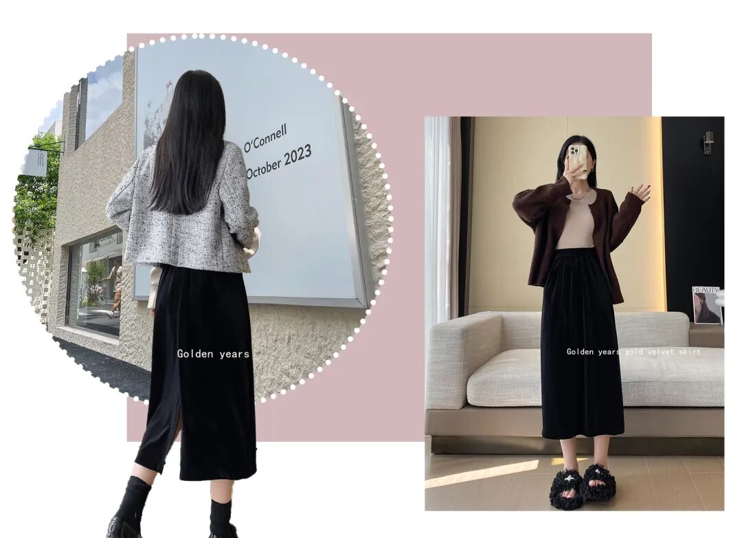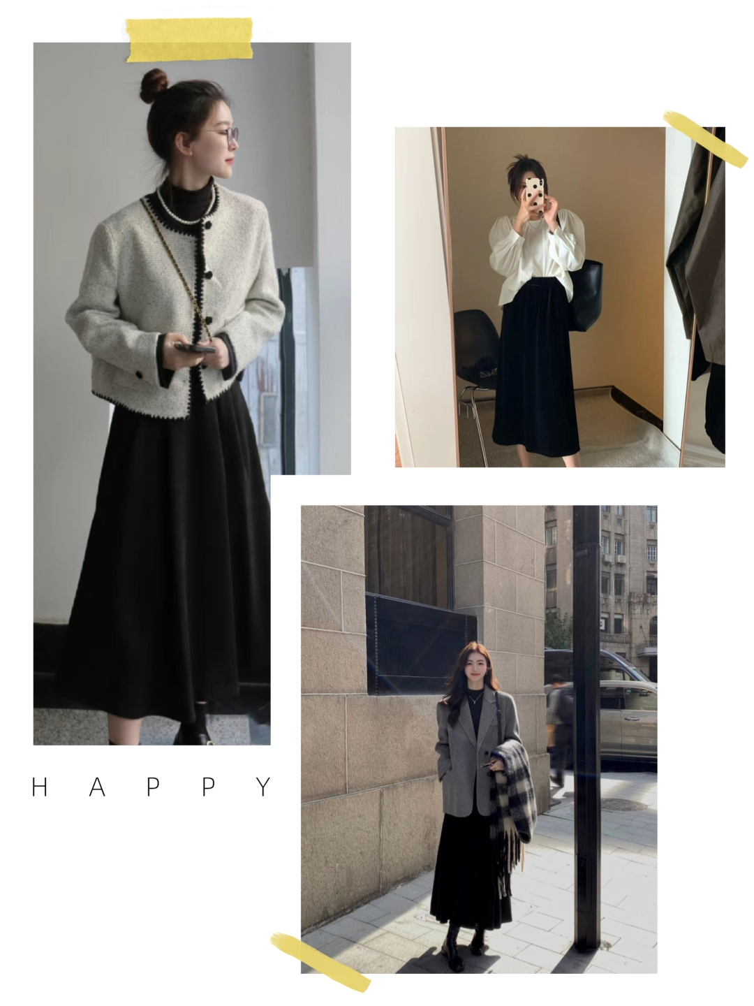 日常穿搭完全ok,穿着丝绒半裙,在寒冷的秋冬也可以美得随心所欲!