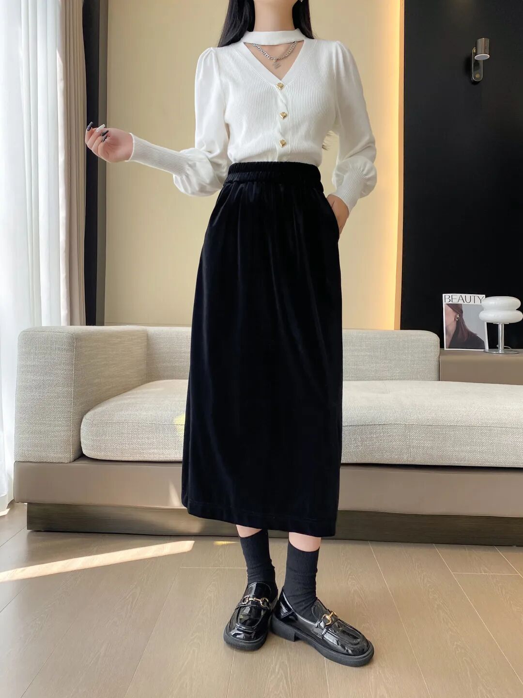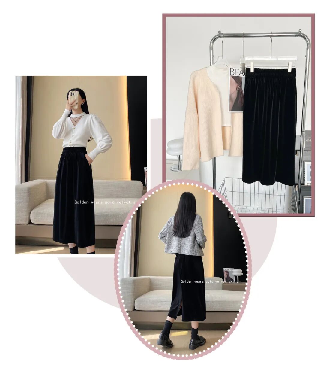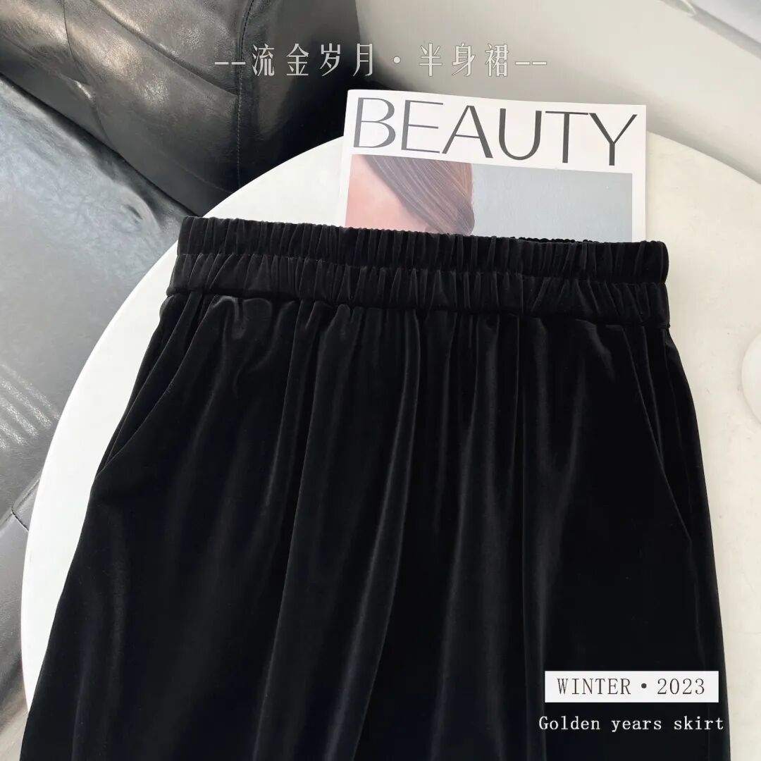 日常穿搭完全ok,穿着丝绒半裙,在寒冷的秋冬也可以美得随心所欲!