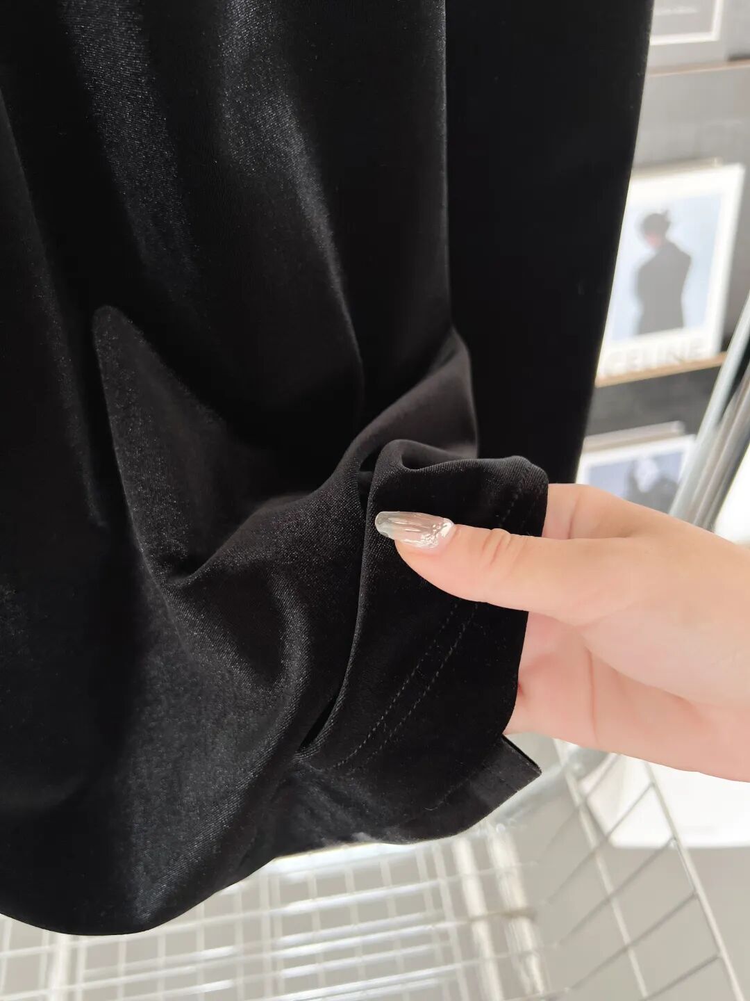 骆柒柒这条,就只设计了一款高级黑,因为黑色在丝绒中是最显质感的颜色!