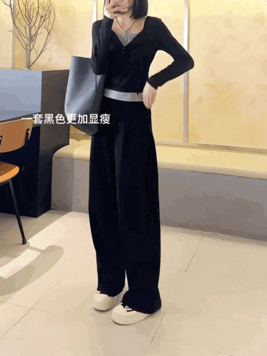 这款阔腿裤什么身型都能包容,有给足自在感,显瘦藏肉一眼看到就是大长腿小姐姐