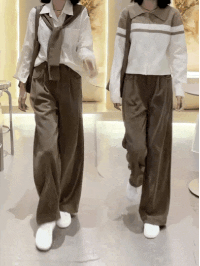 美拉德阔腿裤,奶茶色搭配棕色上衣,间色搭配好好看呀!