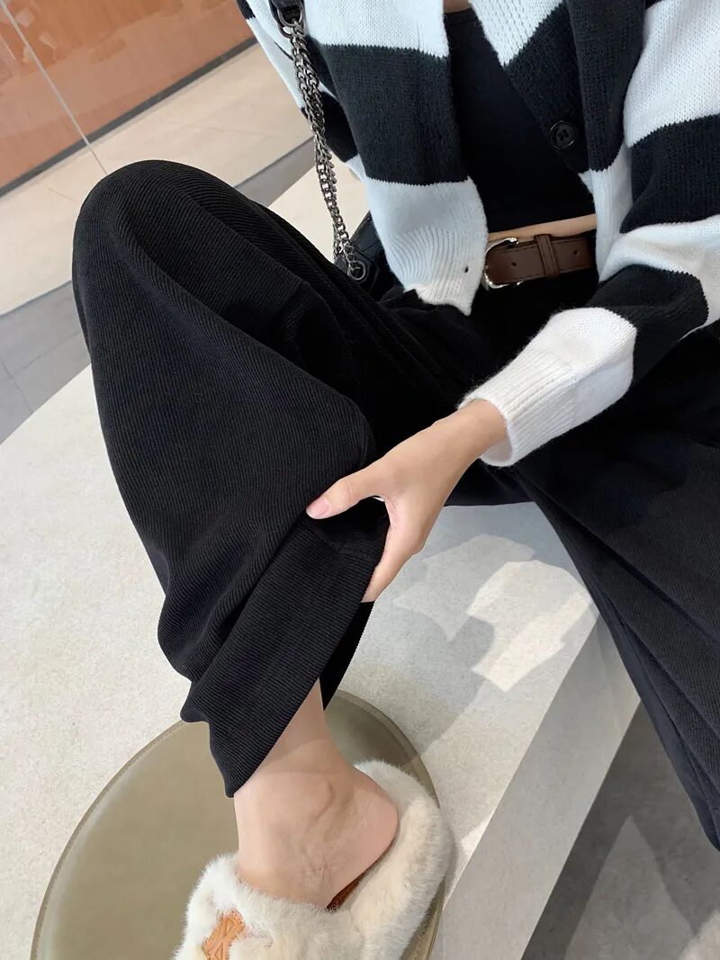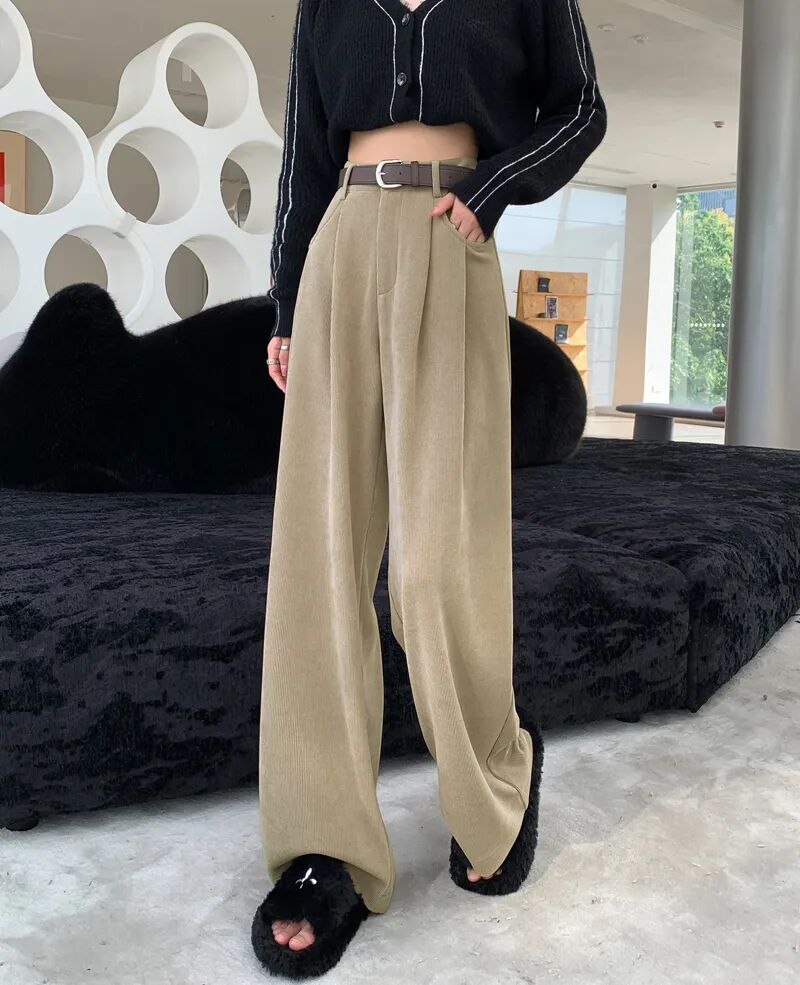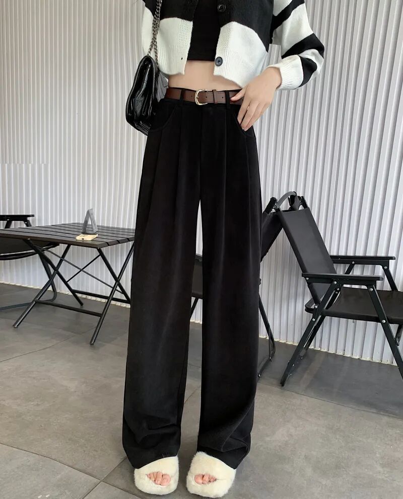雪尼尔阔腿裤不仅修饰了腿部赘肉,视觉直接拉长6cm,尽显大长腿。
