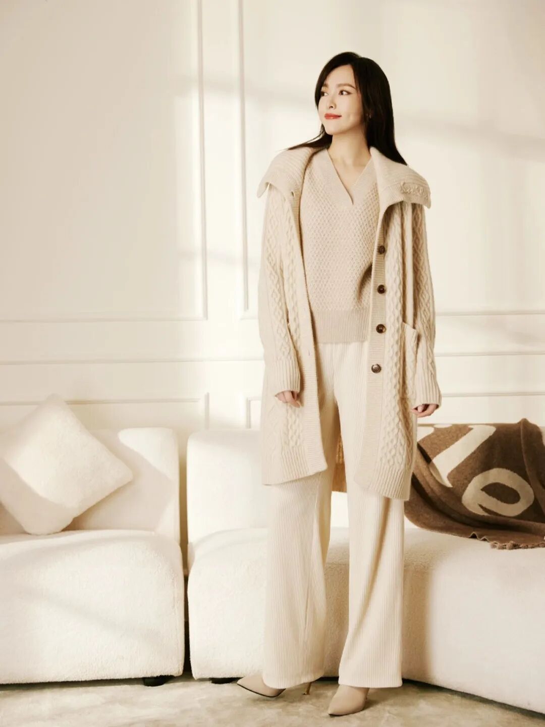 这一套好显白呀!白色裤子搭配针织开衫,尽显温柔和洋气高阶