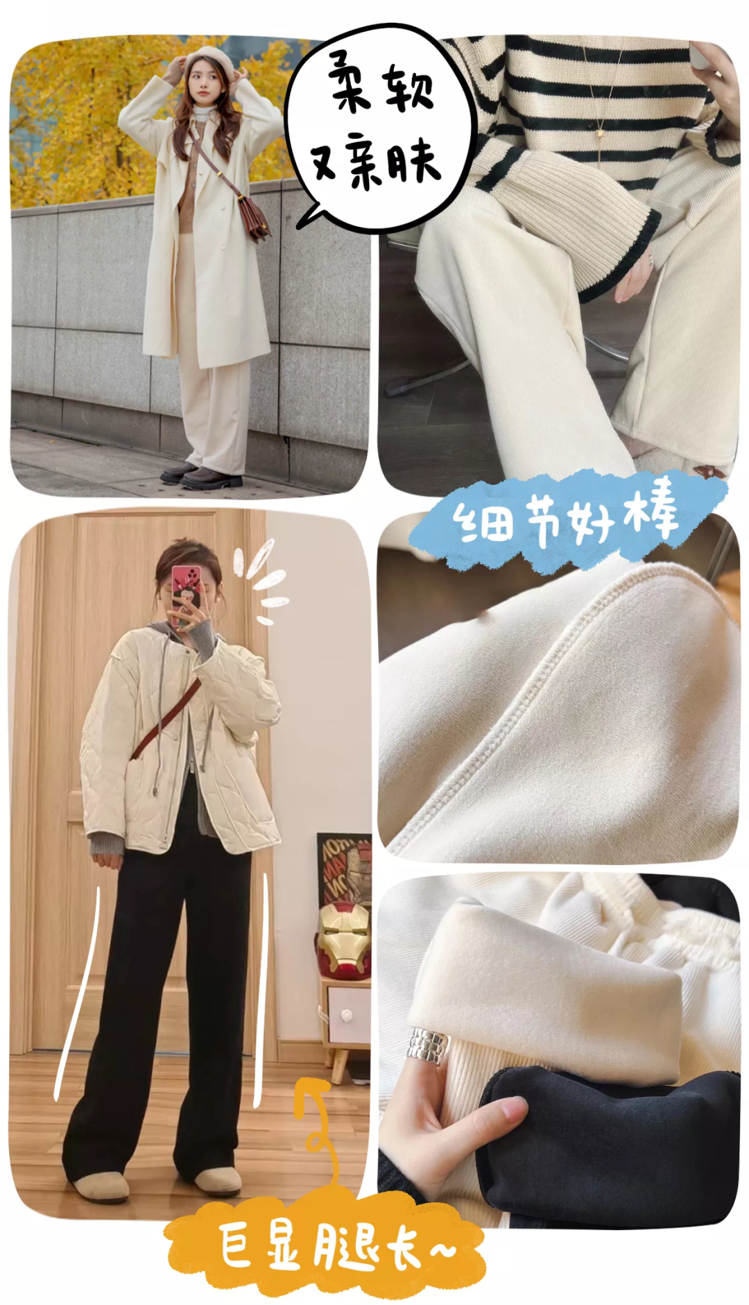 这款裤子提供五种颜色和加绒与不加绒,与众多上衣单品混搭