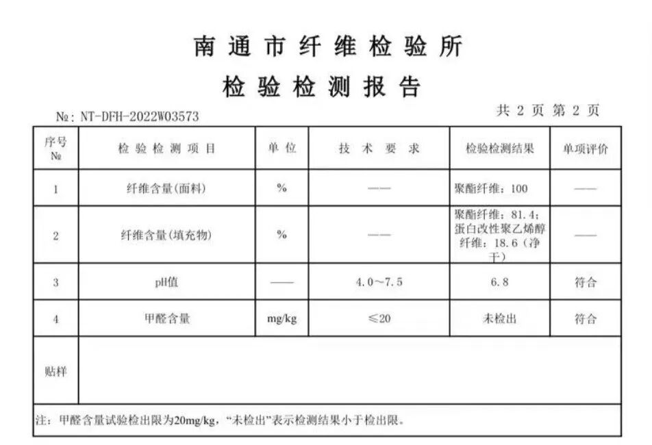 而这款大豆被则是由81.4%的聚酯纤维和18.6%的蛋白改性聚乙烯醇填充而成的。