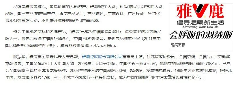 雅鹿是一家知名的时尚服饰品牌,并且产品线丰富哦!