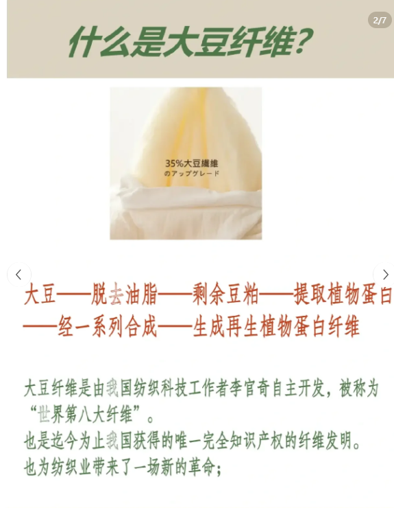 而其他标注,例如大豆纤维、大豆蛋白纤维,都是不规范的标注,不建议各位亲亲购买哦。