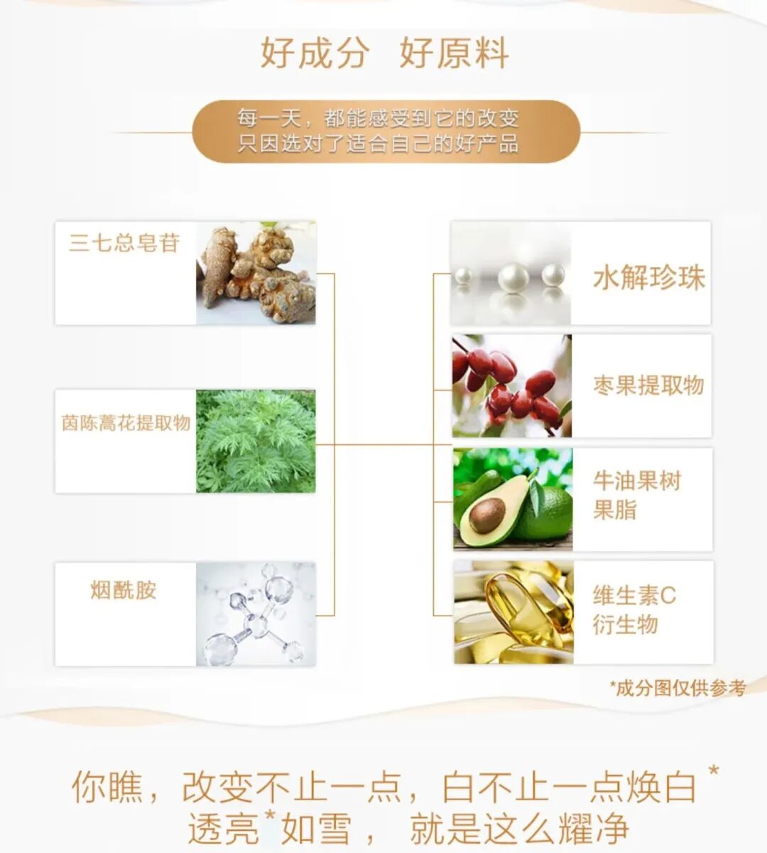 ✅三七总皂甙✅茵陈蒿花✅枣果,hold住皮肤状态,提高整个配方的效果加速度🚗🚗🚗