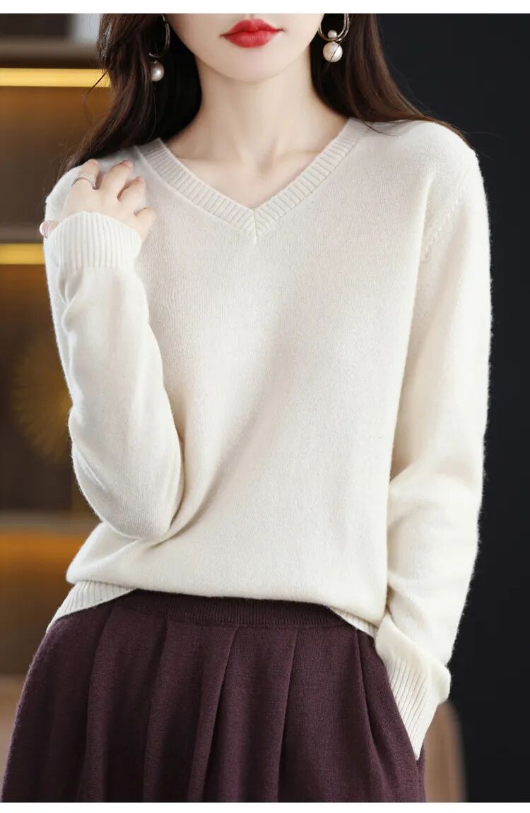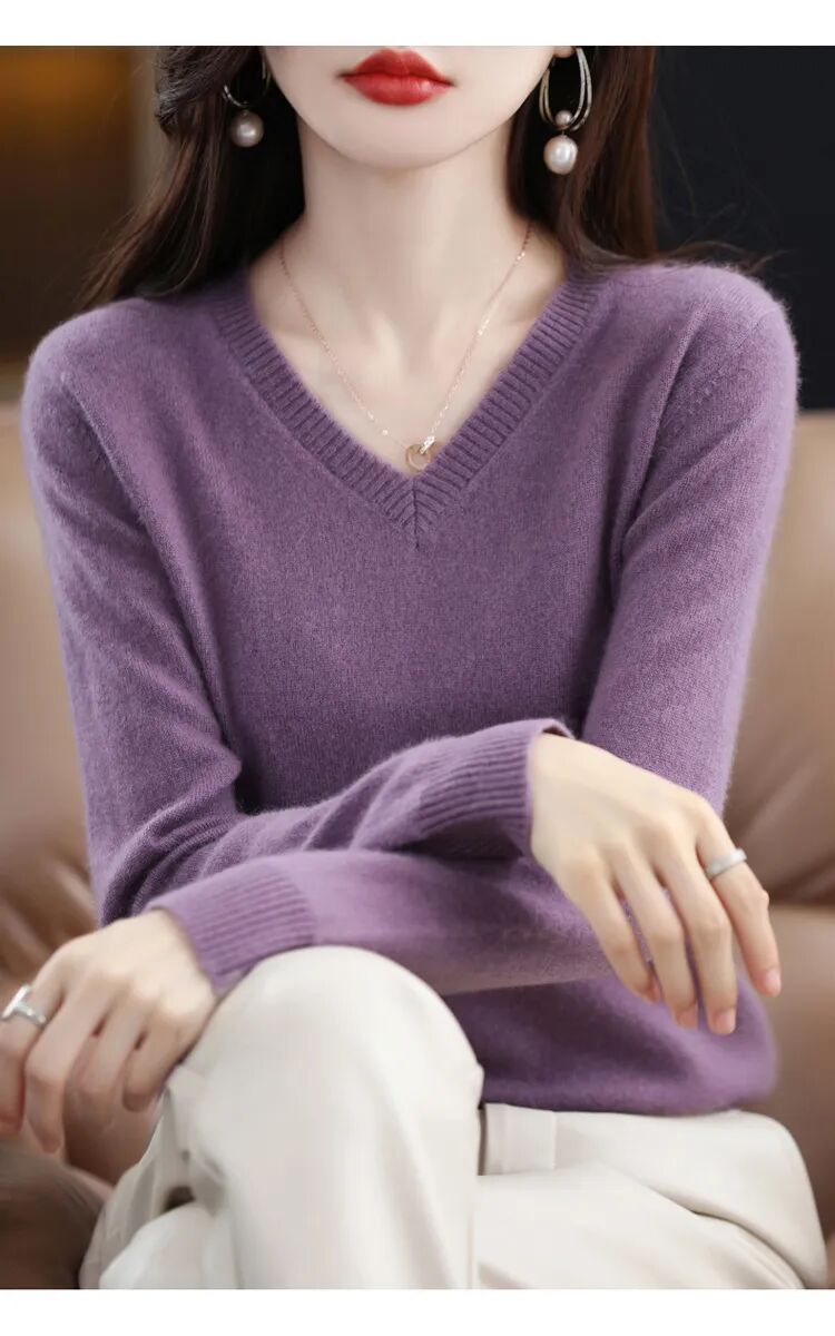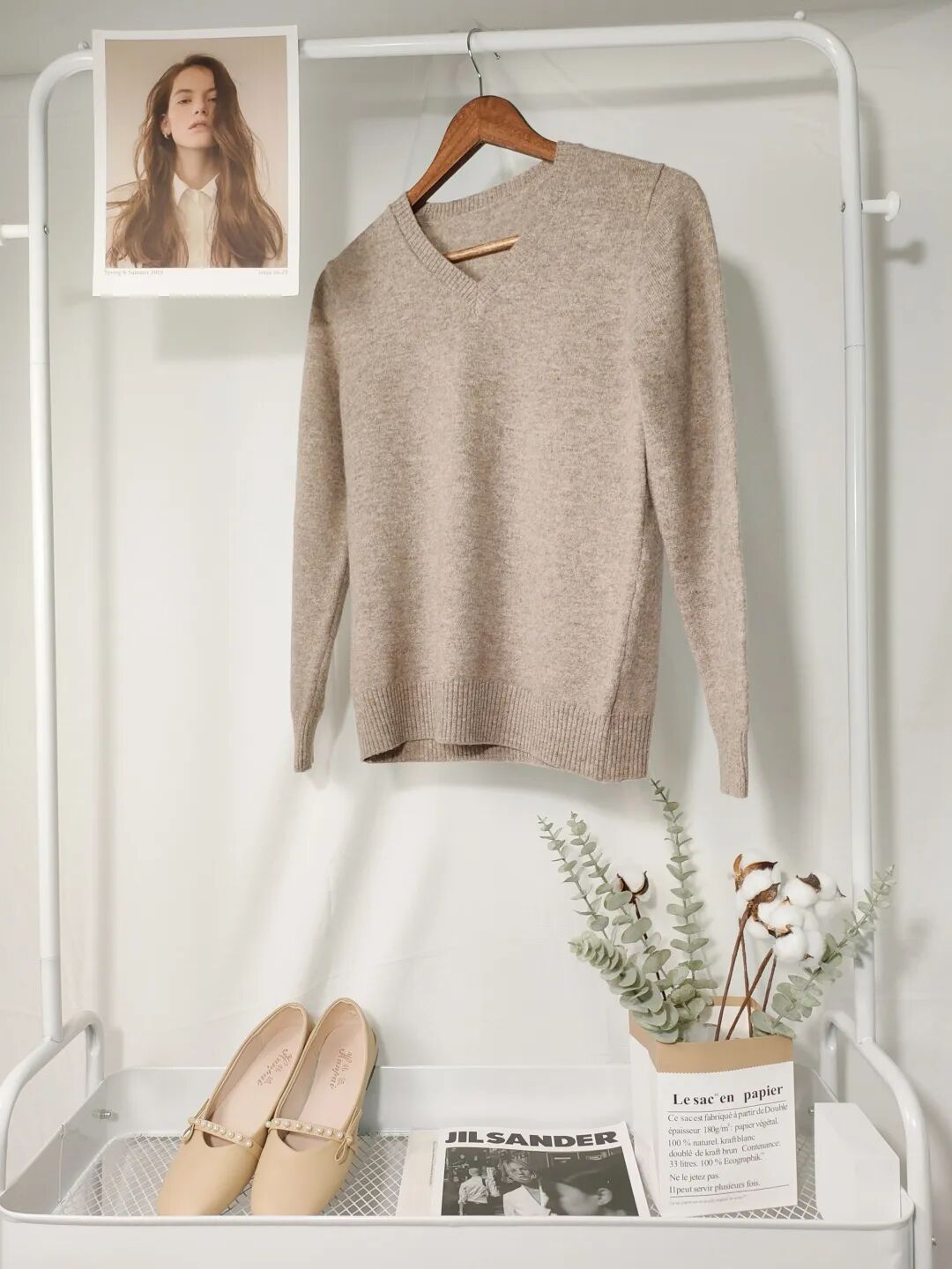 特别是纯色的v领羊毛衫,随便一穿就很优雅,很耐看。