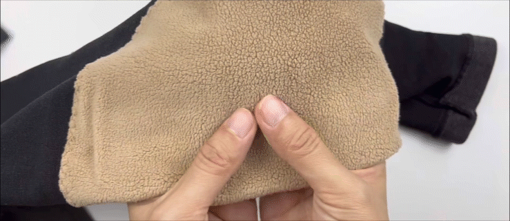 表面绒毛能形成空气层,上身自带发热感。比普通面料更亲肤更保暖。