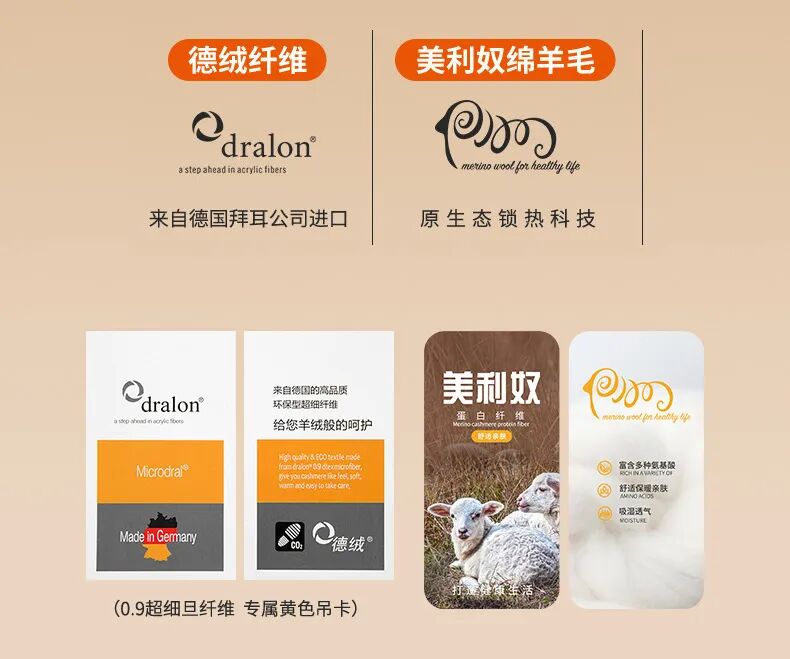 加上美利奴绵羊毛,双重保暖,锁温抗寒。它比普通羊毛更加细软、强韧、纤长,更轻盈也更保暖。