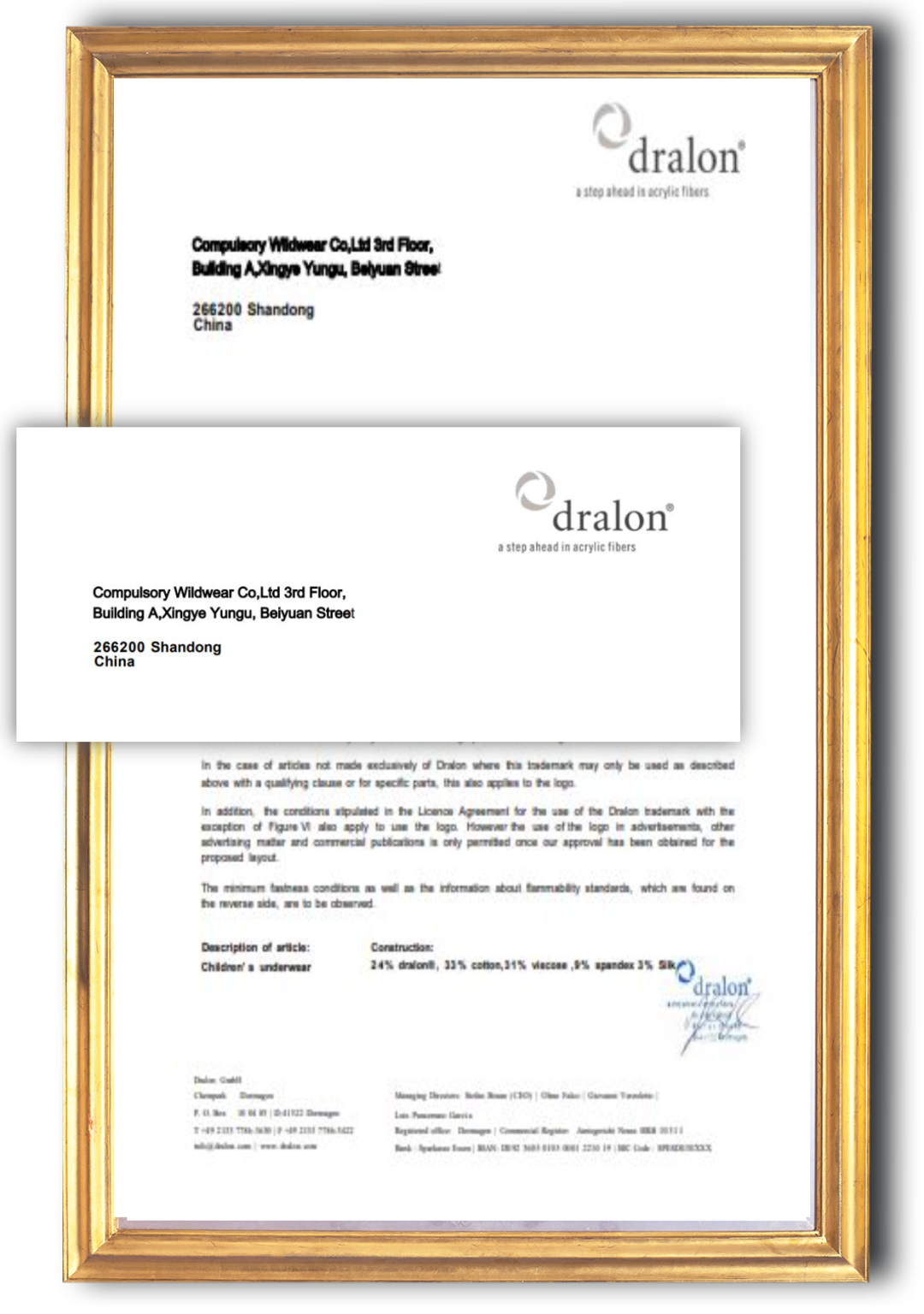 给大家看看德国拜耳面料授权书,品质相当有保障!