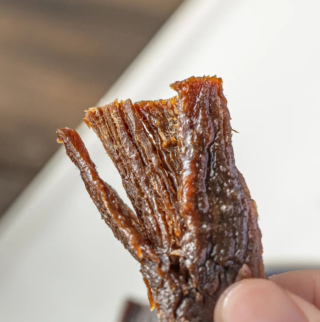 口感是韧韧有点嚼头的那种,但完全不会发硬难咬,就像是吃自己家里切片烤干的肉,不过调味好很多。