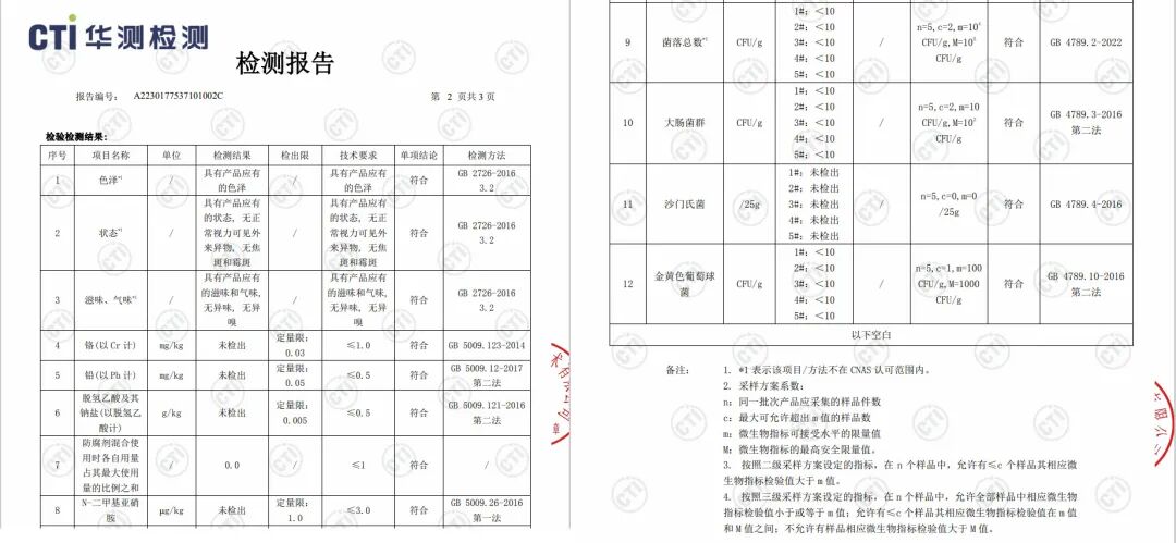 通过了食品安全监测,各项都达标。