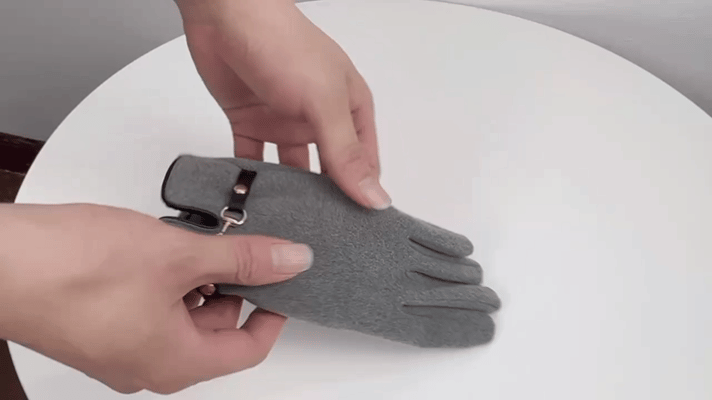 手套剪裁立体有型,戴上起到修饰的效果。