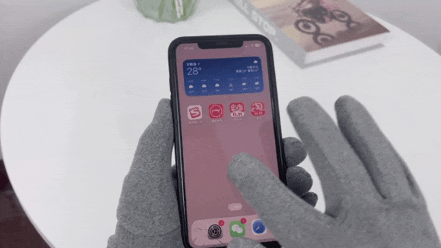 普通的手套通过加厚的面料阻隔电流与人体热量,戴上手套玩手机,屏幕毫无反应。