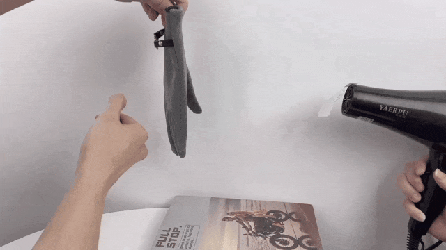 戴上手套,挡在吹风机口