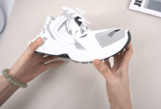 来看!白色鞋身+黑色鞋底形成的“熊猫”撞色效果莫名有股可爱。
