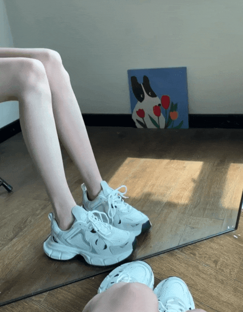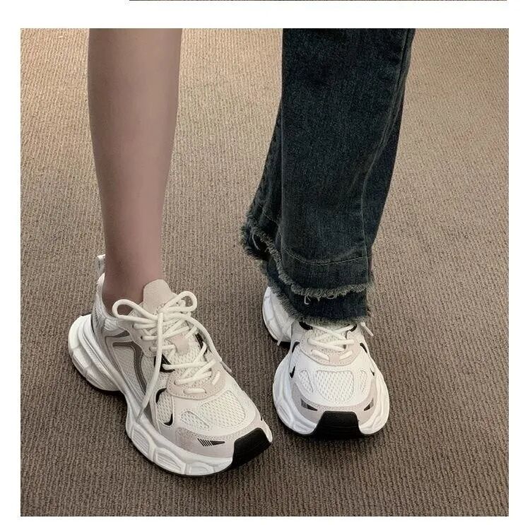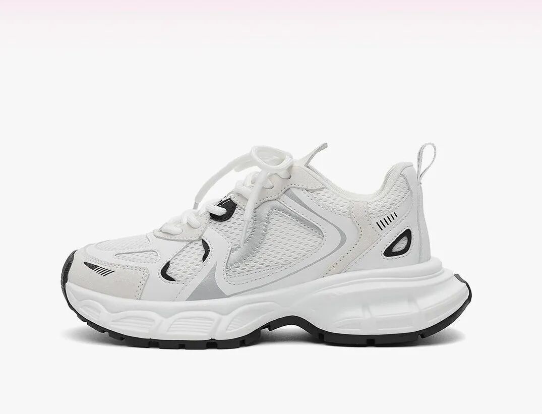 5cm左右的厚底,比普通运动鞋要高,满足了很多小仙女的增高需求,上脚视觉效果也能特别自然。