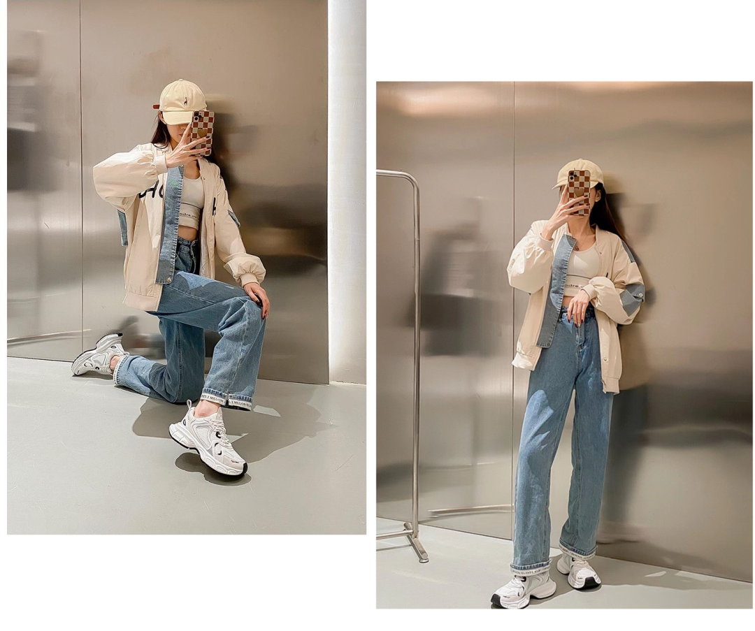牛仔裤是老爹鞋的最佳cp,宽大的牛仔裤遮住脚背,露出小小一截的老爹鞋,隐形中增高了不少。