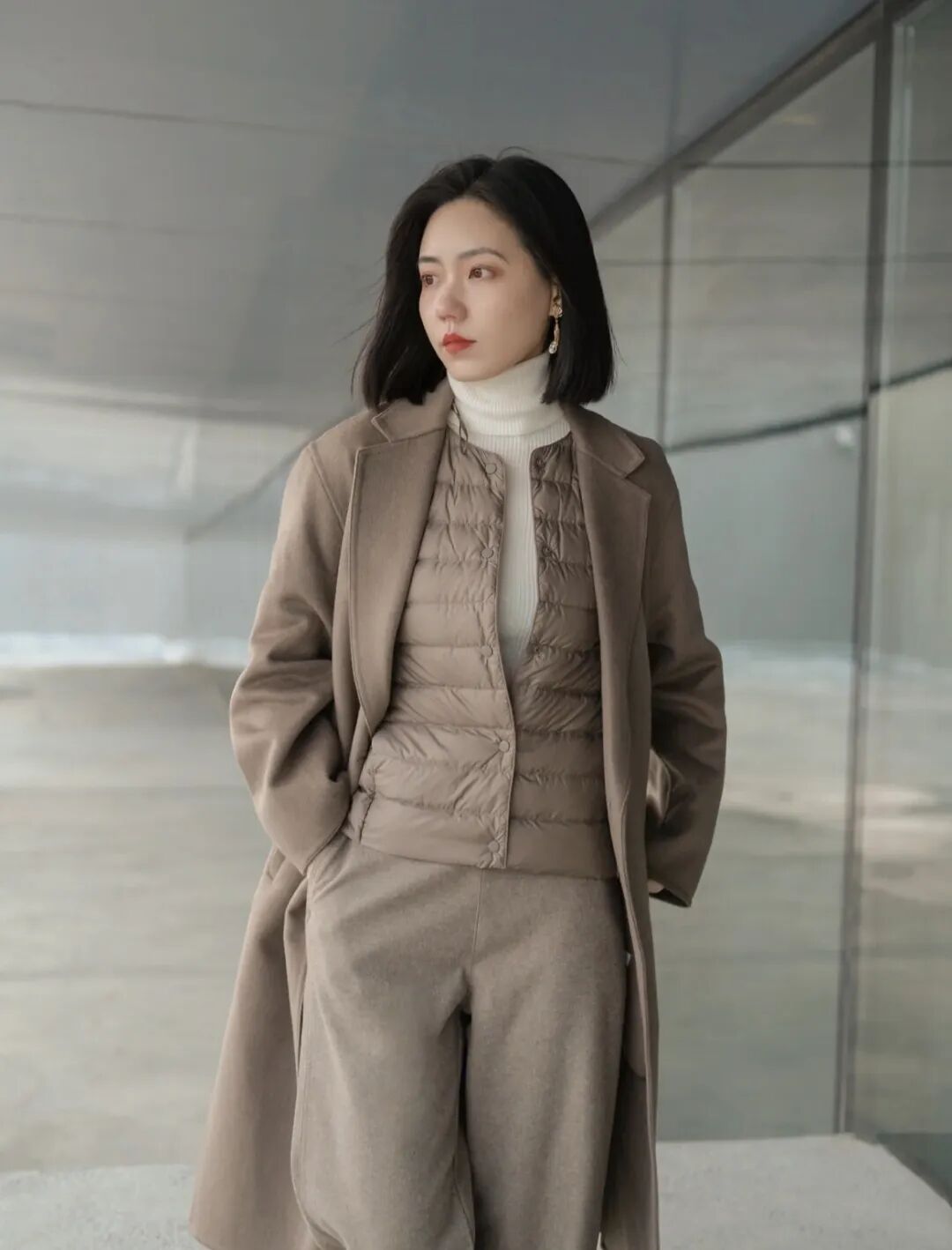 搭配同色系呢大衣,冷静自持的干练感瞬间拉满,气质职场范气场两米八。