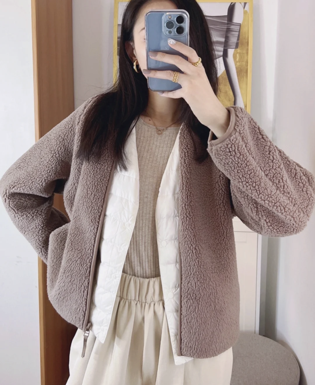 这款羽绒服穿上身,无负担不臃肿,可以套在各种大衣外套里面当内搭。