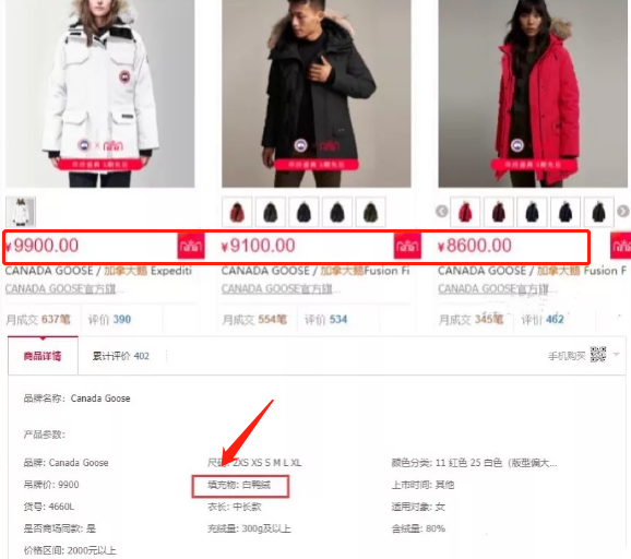 插播一句:声名远扬的万元加拿大鹅,填充的也是白鸭绒。