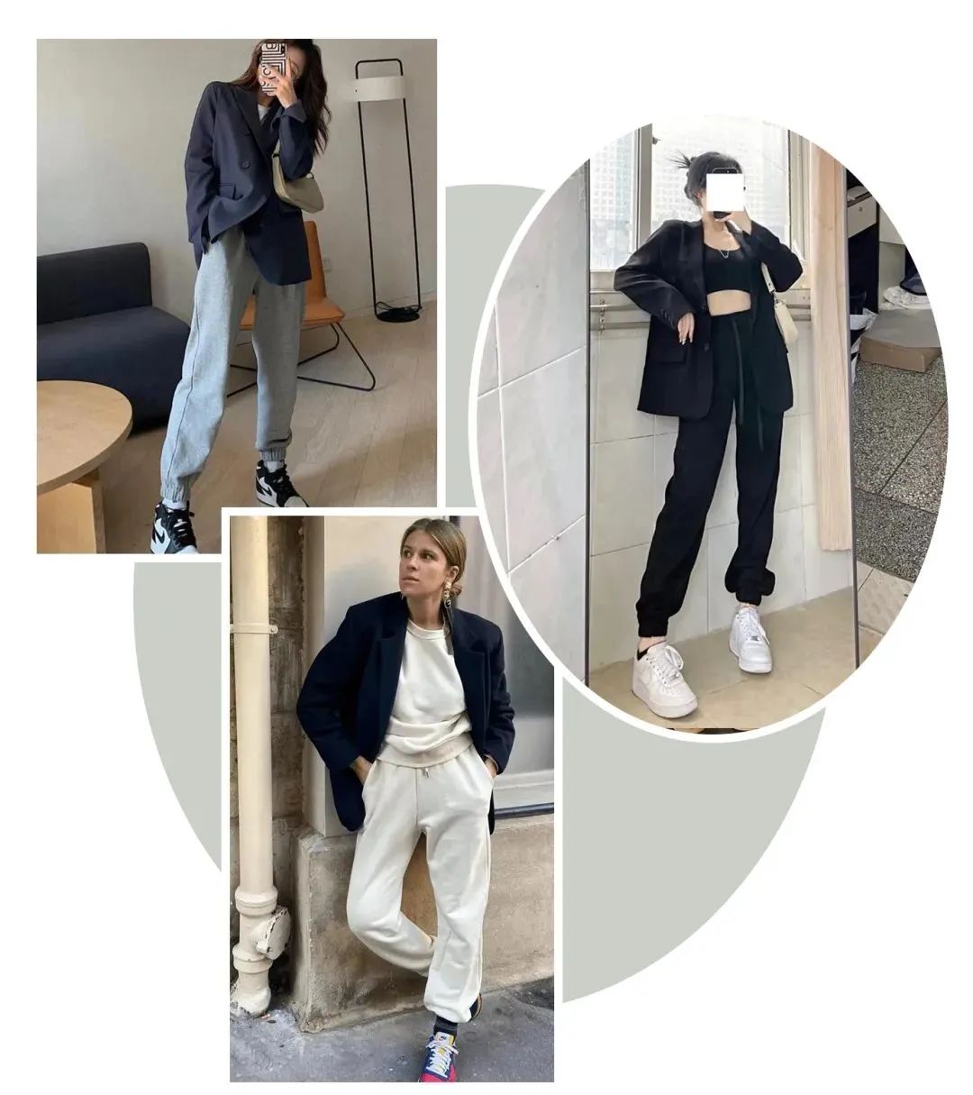 所以呢,它也可以和卫裤搭配,休闲和上班两不耽误~