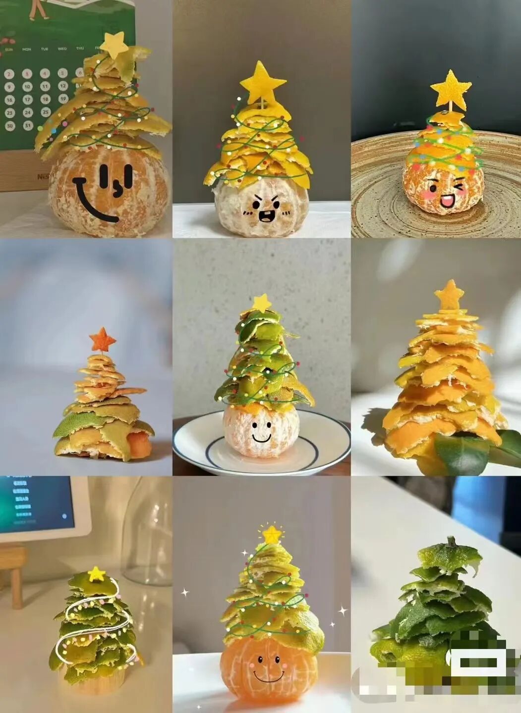 这些可爱的橘子圣诞树,都是用雾柑做成的哦。