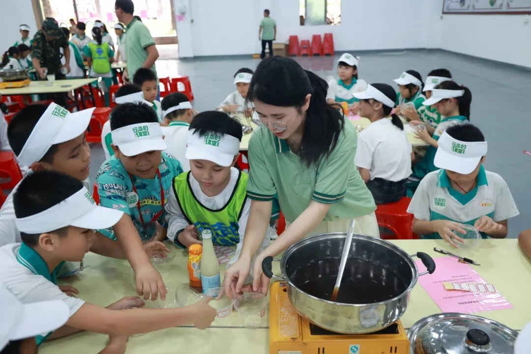 在制作龟苓膏的环节中,学生们有机会动手制作这道传统美食。他们亲自熬制、加工,并在最后品尝自己的成果。不仅了解了中草药的应用,还享受了美食的乐趣。