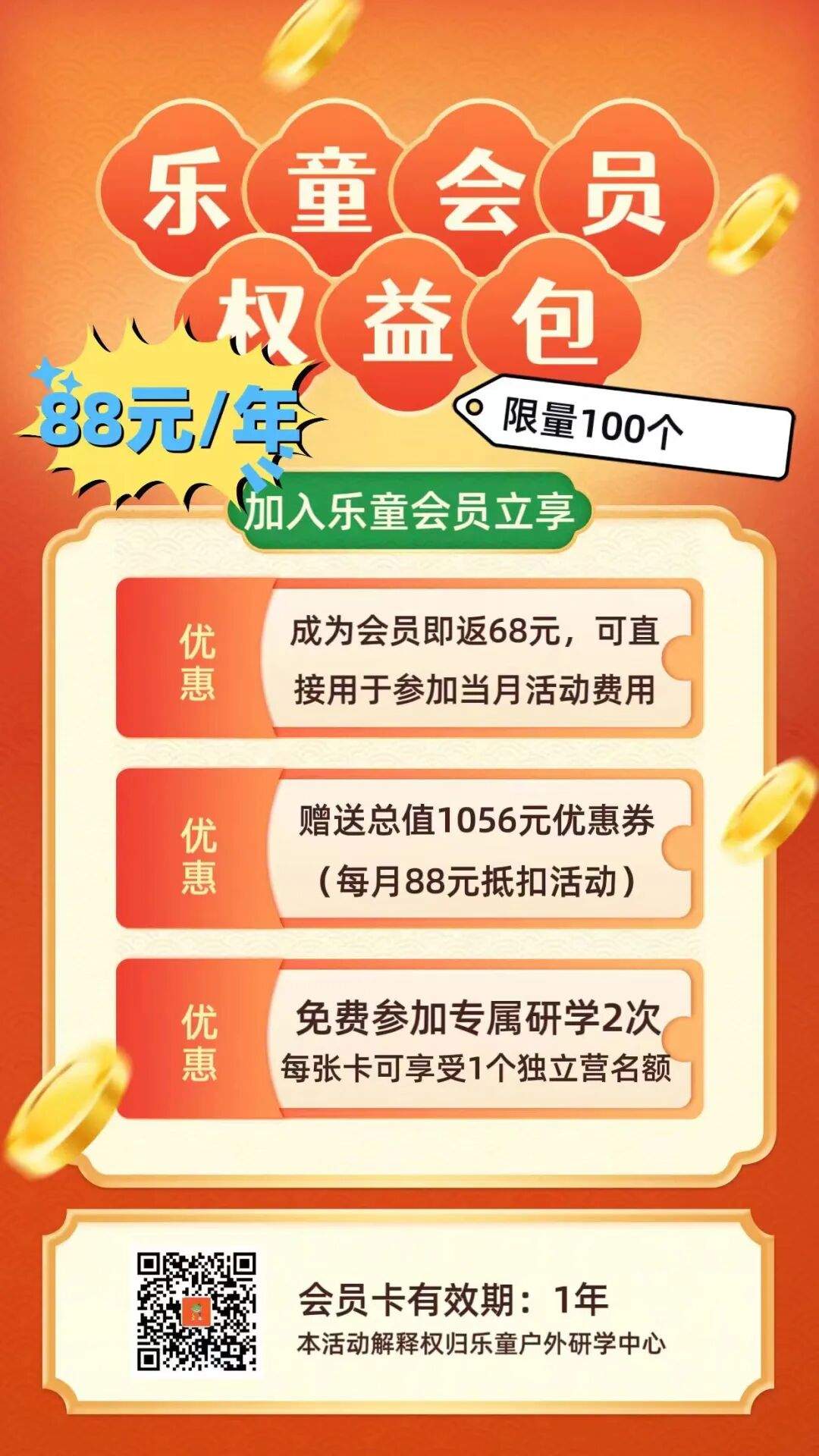 3. 享有会员专属活动(每年最多可免费参加2次会员专属研学活动,每次会员专属活动名额先到先得,会员专属免费研学活动每张卡仅限1个名额)