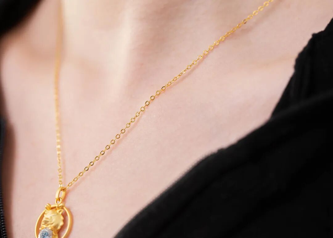 金色衬肤,S925银镀金色,让脖颈间的皮肤更显白皙,嫩如白雪,也不易过敏。