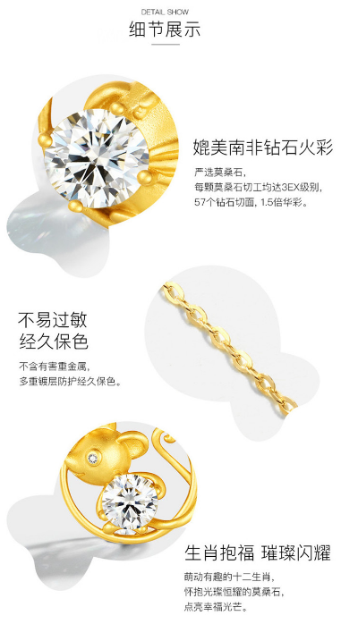 造型生动的生肖吊坠真实可爱爆表,除了炫彩的大颗莫桑钻外,怀抱“宝珠”的生肖生动巧妙,非常好看!