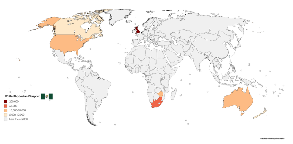 津巴布韦独立后,本地白人纷纷移民向英国、南非、澳大利亚等国。1999年-2002年津巴布韦白人人口数量从12万下降至5万,而到了2012年仅剩下2.8万。以至于津巴布韦白人在海外的数量比国内的还多。