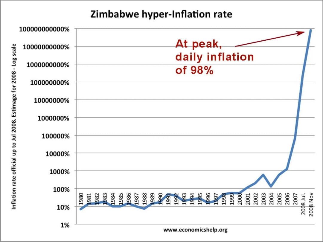▲ 津巴布韦通货膨胀率,2000年之后开始暴涨