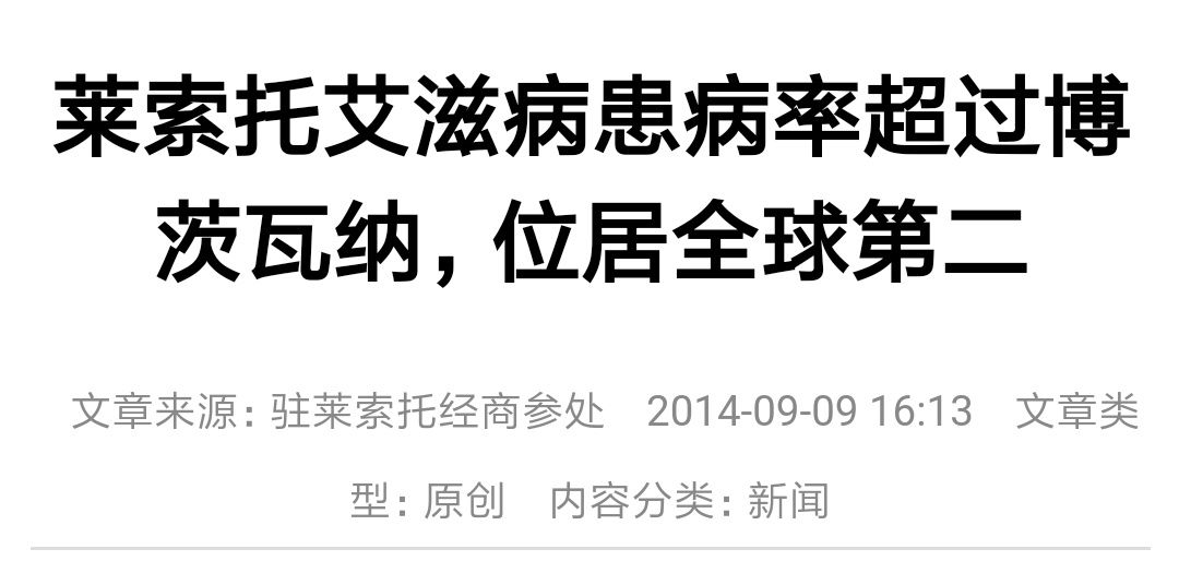 ▲艾滋病患病率全球第二,莱索托整日笼罩在人身健康难以保障的阴影之下