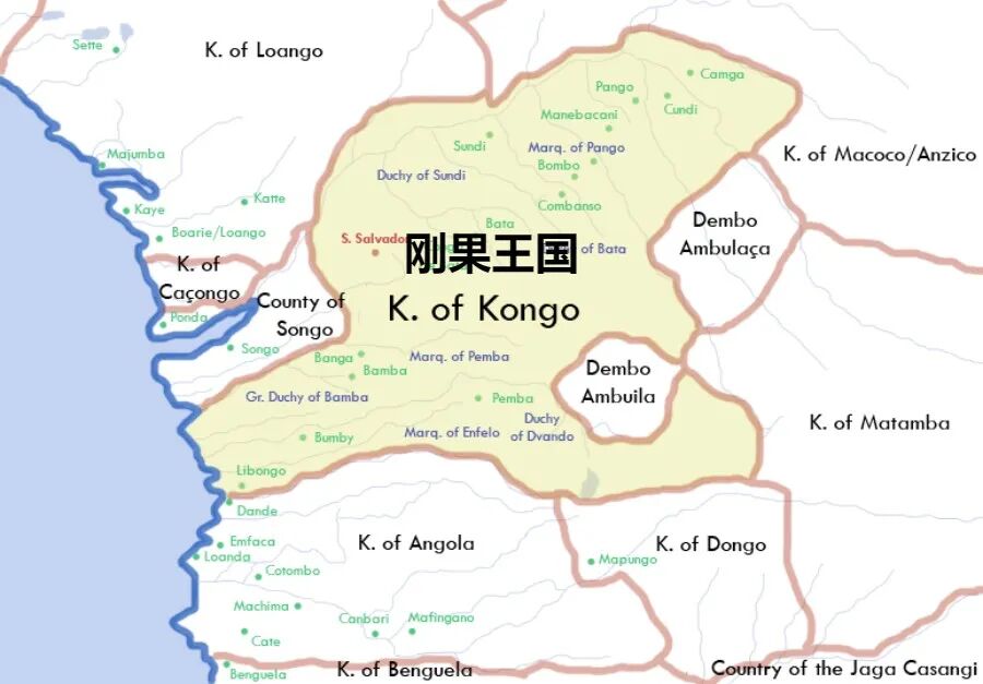 ▲曾兴盛一时的刚果王国在欧洲人到来后迅速衰败,大量黑人被卖到美洲
