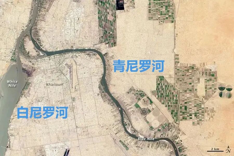 ▲青白尼罗河汇合处的喀土穆(苏丹首都)